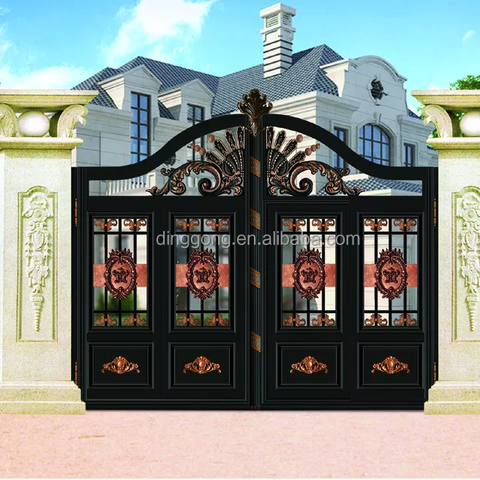 Puertas de aluminio de estilo europeo, puertas de Villa, puertas de jardín eléctricas, puerta de patio de aluminio