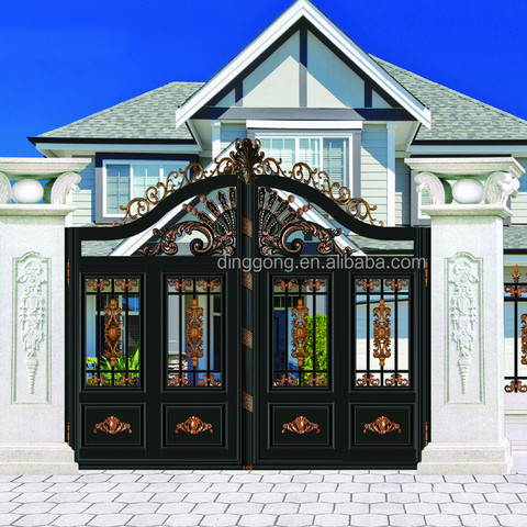 Puertas de jardín de aluminio con control remoto, diseño de seguridad, metal